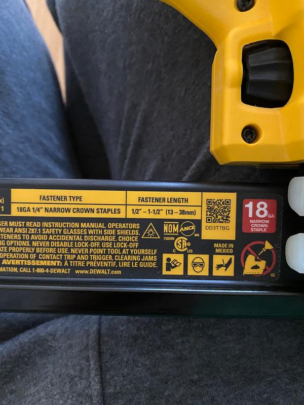 The dewalt dcn682 18 gauge flooring stapler drives 18 gauge 1 4 narrow crown staples from 1 2 to 1 1 2 making it ideal for installing solid and engineered hardwood ranging in thickness from 3 8 to 5 8.